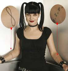 I first got a look at the Pauley Perrette Tattoos Designs on the hit series called NCIS when I spotted the Spider web tattoo on her neck. That hot but check out the cross tat on her back that covers 3/4 of it. It’s rumored that she has about nine tattoos on her body but not one person who has revealed it has come forward to say yes or no. I’ll keep you updated with this chick as she will be getting some riskier roles that may require her to take off the clothes in the future.